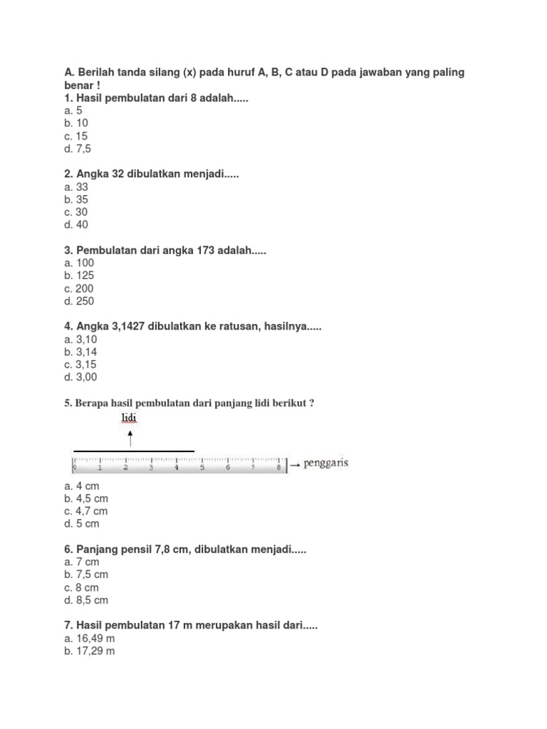 Aug 09, 2020 · pembulatan hasil pengukuran panjang.