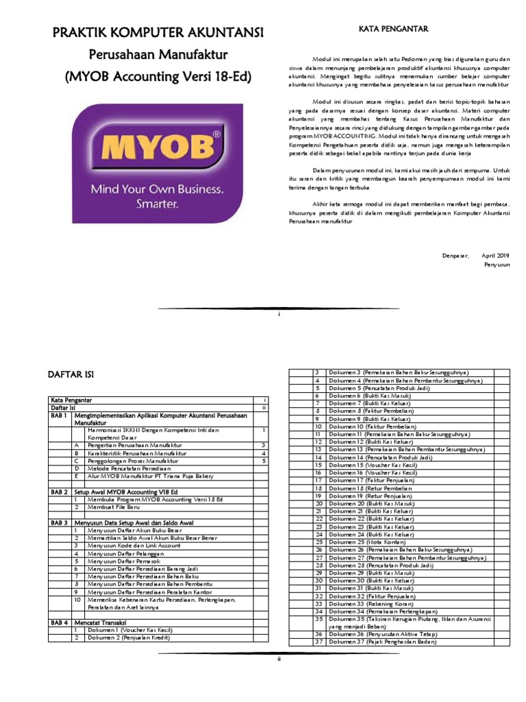 Software ini banyak sekali digunakan di indonesia. Myob (mind your own business) merupakan software akuntansi buatan australia. Manfaat dari penggunaan program myob vs. Modul komputer akuntansi menggunakan myob accounting 7 membuka program myob accounting pastikan bahwa computer anda telah diinstal dengan program myob accounting plus v. Dimana program myob vs.18 ini sering digunakan dalam perusahaan, sehingga memudahkan praktisi akuntan/ siswa dalam mengelola pembukuan.